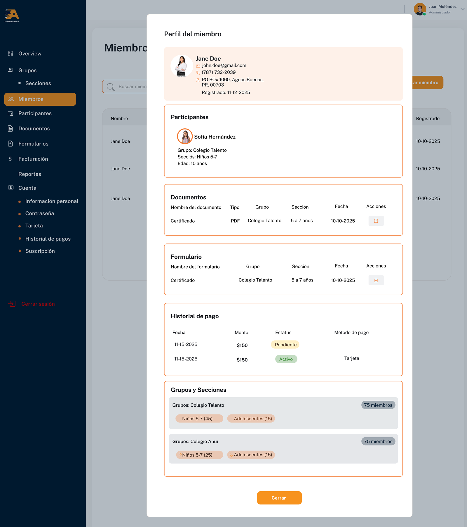 Con Apúntame, escuelas, clubes, academias, ligas deportivas y otras entidades pueden centralizar sus operaciones diarias en una sola herramienta. Desde el registro de nuevos miembros, creación de formularios personalizados y manejo de documentos, hasta la automatización de pagos y reportes financieros, Apúntame permite optimizar procesos administrativos y mejorar la experiencia de los usuarios.